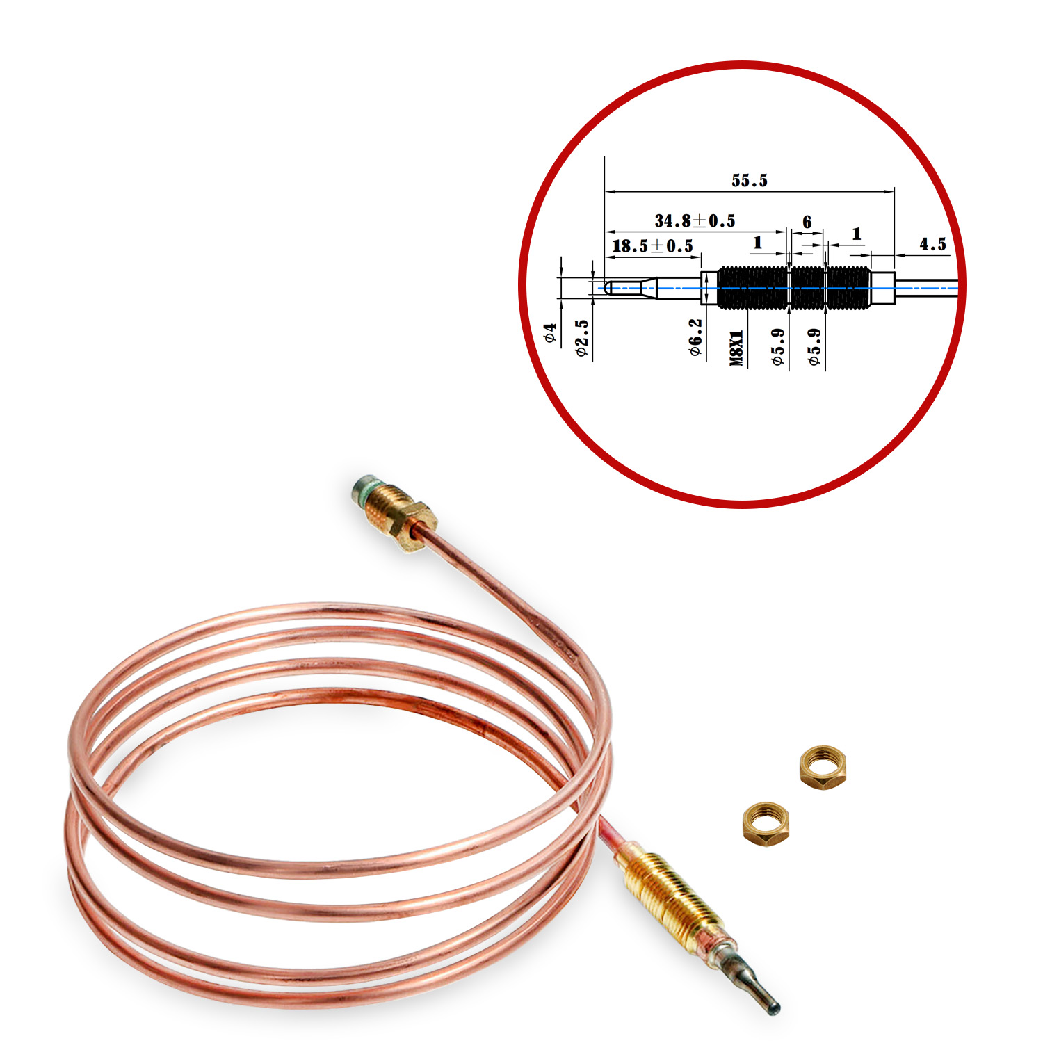 Termopar para vitrocerámica conexión magnética con tuercas de ajuste longitud 1200 mm adaptable Whirlpool indesit codigos C0028639 - 482000026130