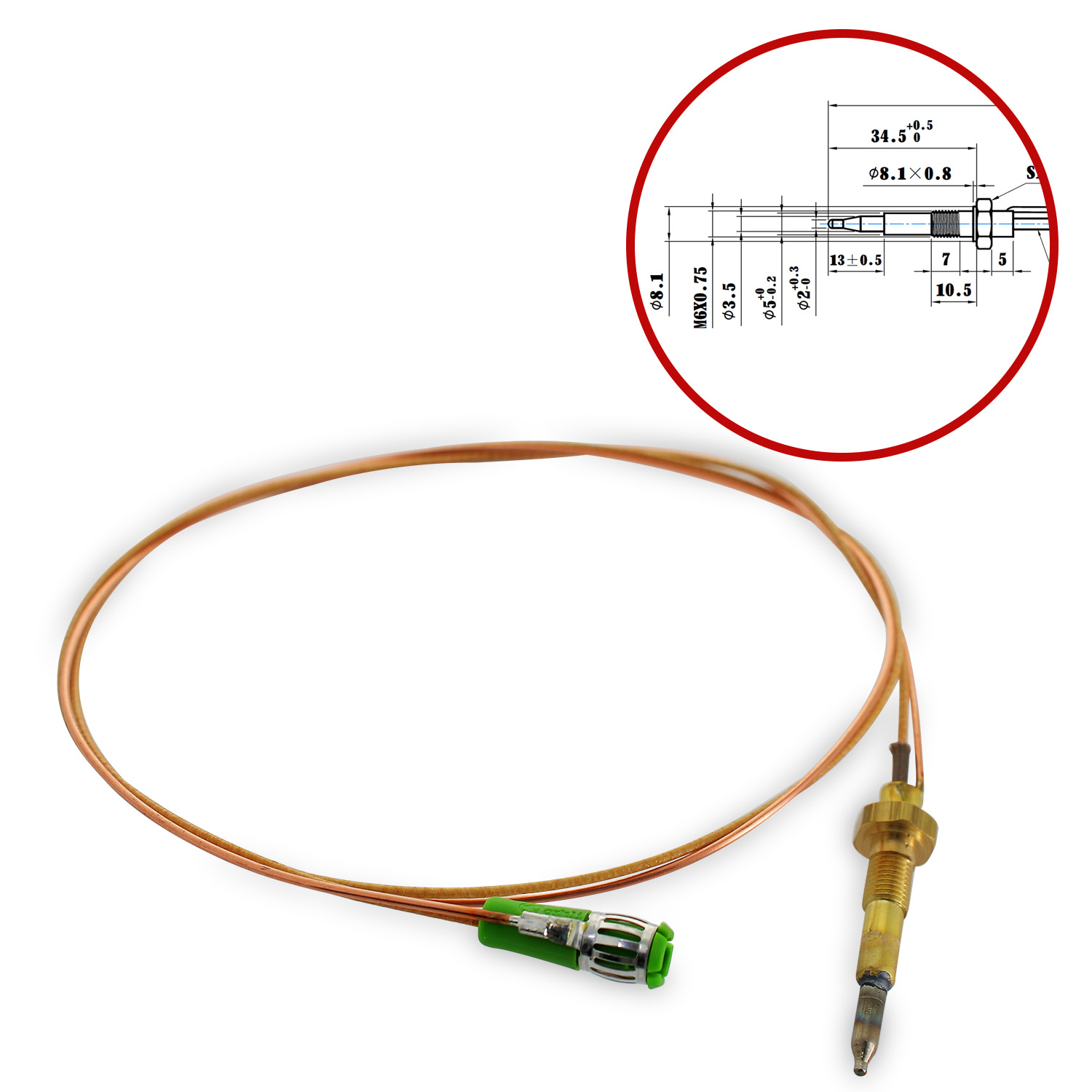 Termopar para vitrocerámica conexión magnética con tuercas de ajuste longitud 750 mm adaptable Smeg 948650135 - C00094330