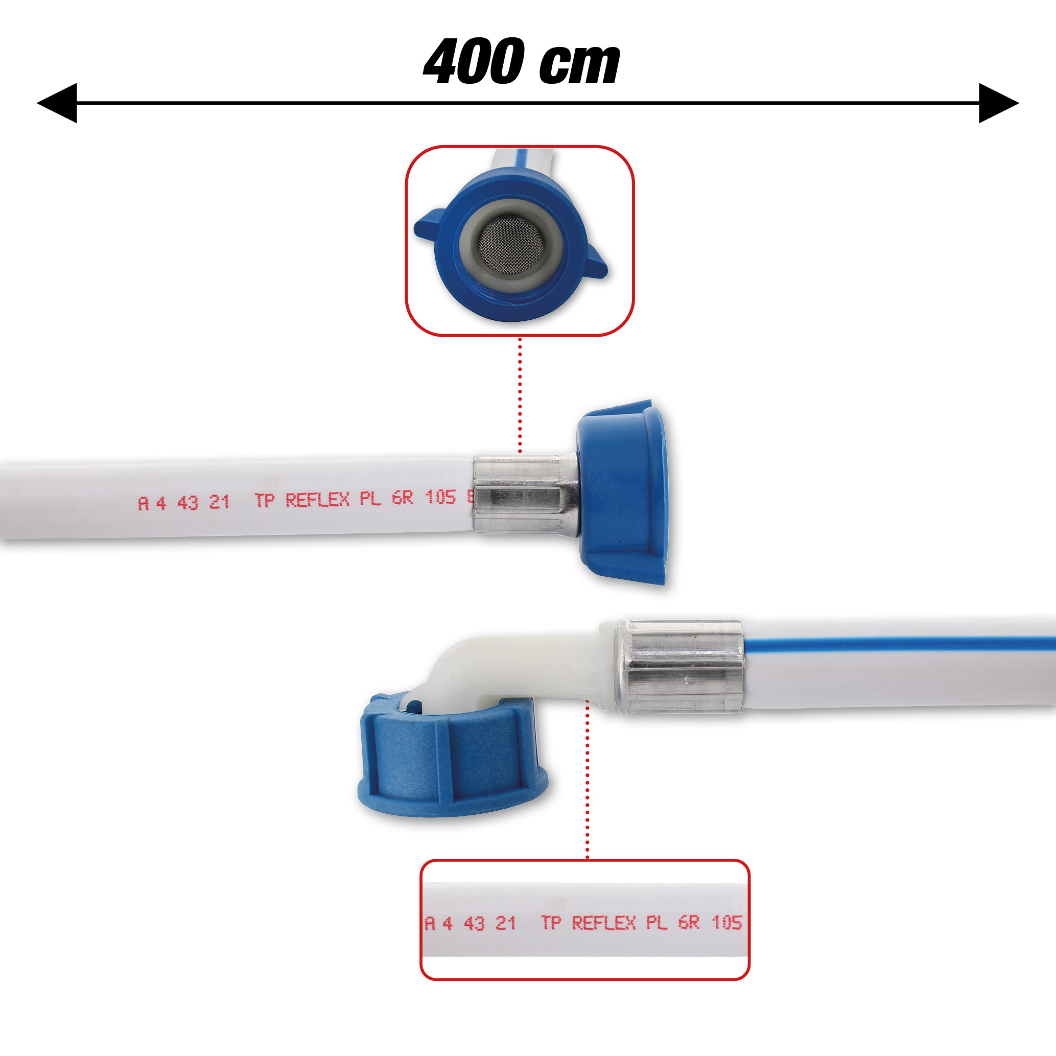 Manguera de entrada con certificación VDE 400cm max 25° 02-10bar 3/4 ff doblada/recta Alta calidad