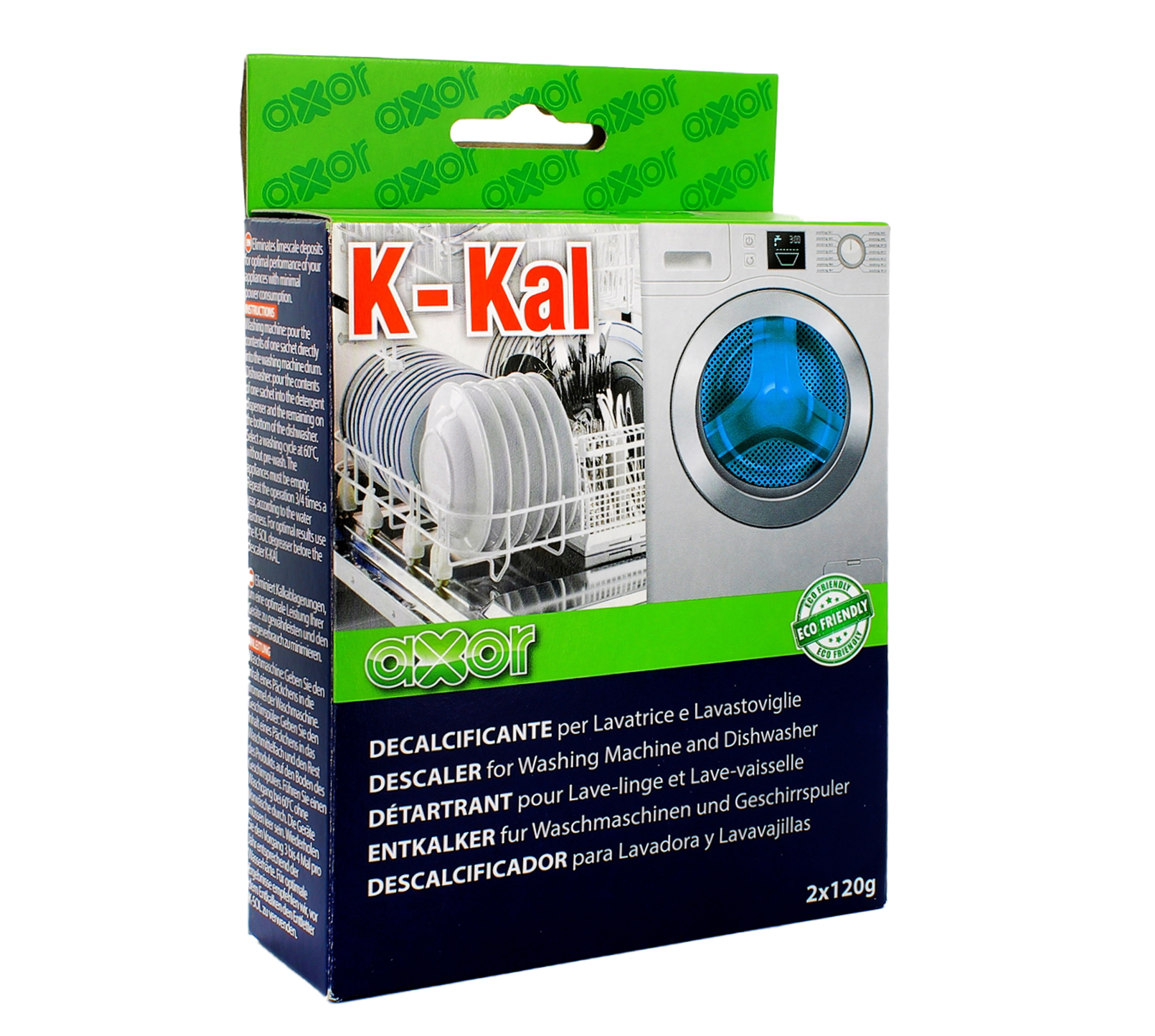 K-Kal Poussière Décalcant 2 Enveloppes de 2 125gr dans la boîte pour les machines à laver et le lave-vaisselle - Axor Product