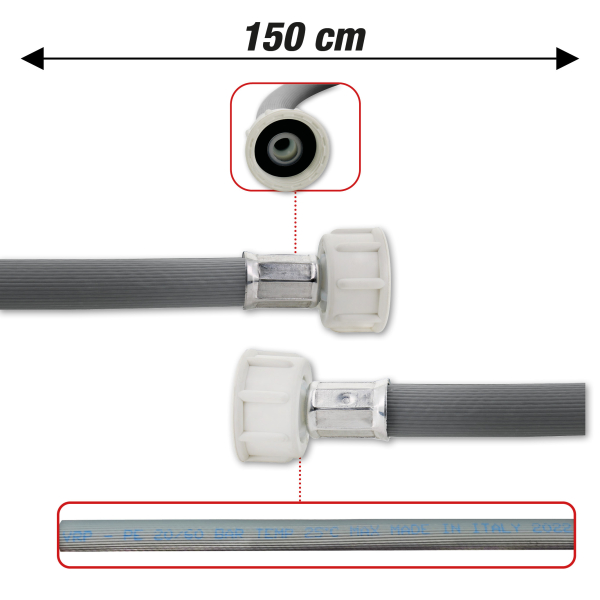 Tuyau d'arrivée femelle/femelle droit/droit 3/4 150cm 20-60bar max 25°