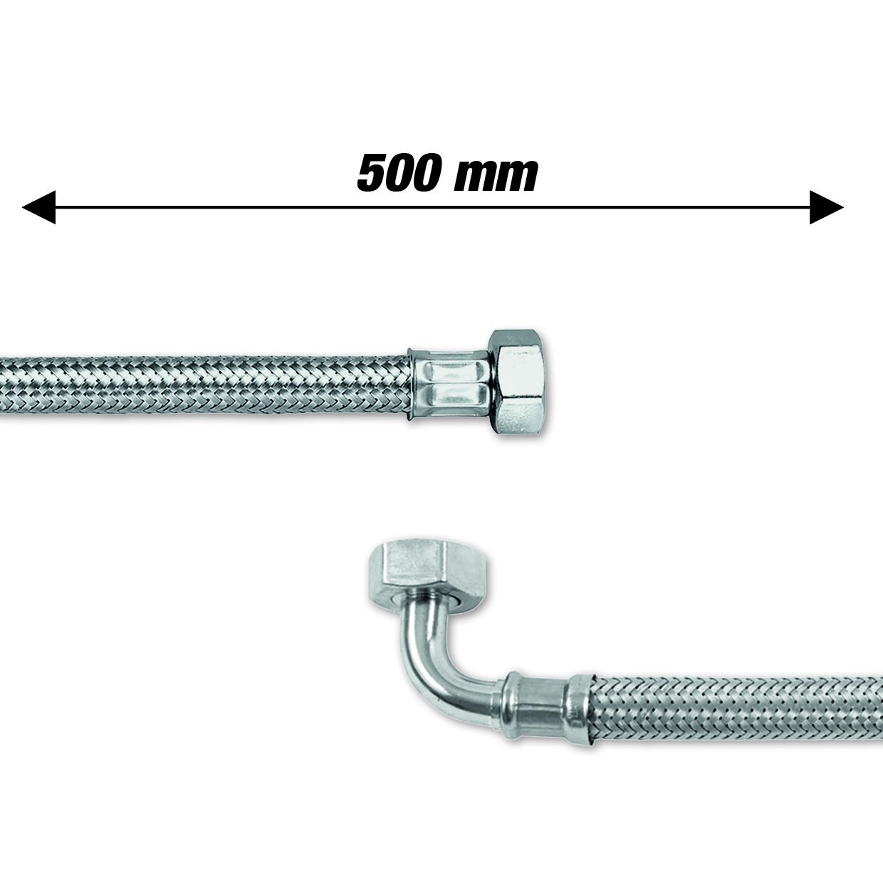 Tubo carico acqua trecciato inox 500mm 3/4f curvo 3/8 f dritto int. epdm